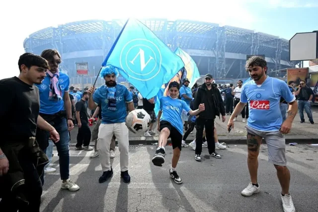 Според „Гадзета дело спорт“ между 350 000 и 500 000 души са били по улиците и площадите на града преди и по време на мача. Фойерверки, пиене на бира пред телевизорите в заведенията и скандирания Наполи по улиците в очакване на титлата и грешка на конкурента.